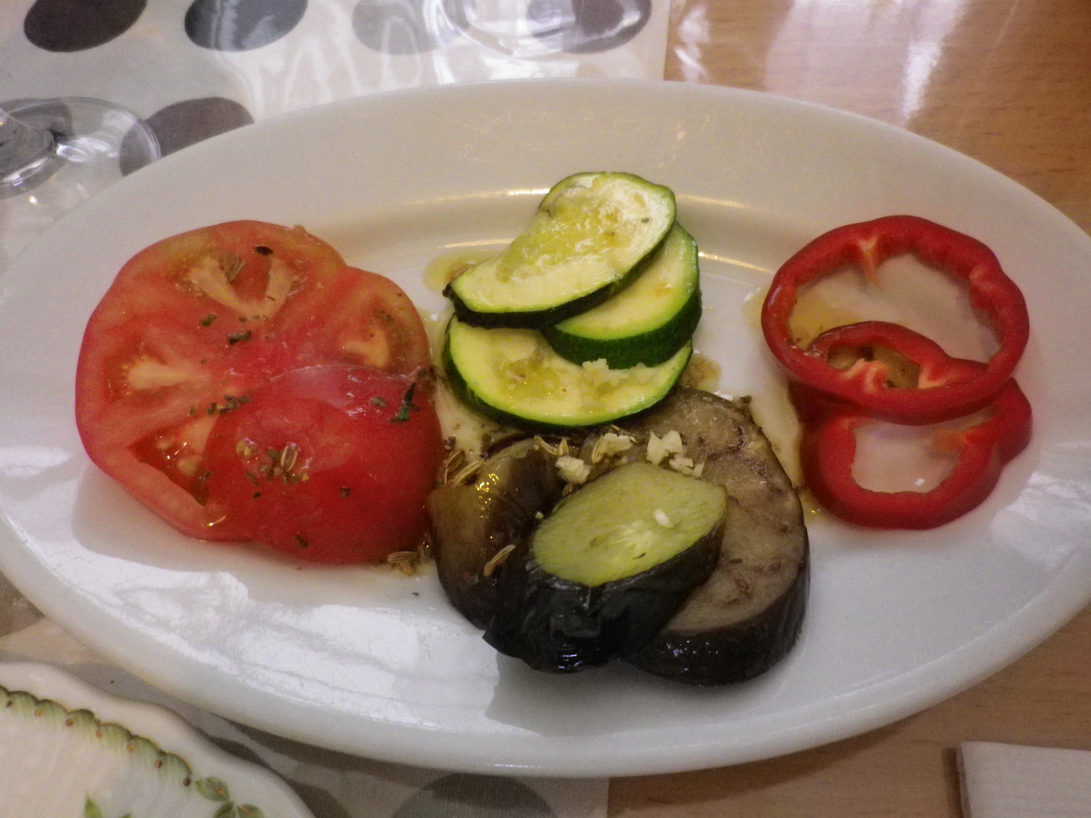 ・お皿に、ナス、ズッキーニ、トマトを並べます。