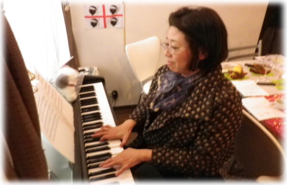 PIANISTAのケイコさんの伴奏でTu scedi dalle stelleを合唱!